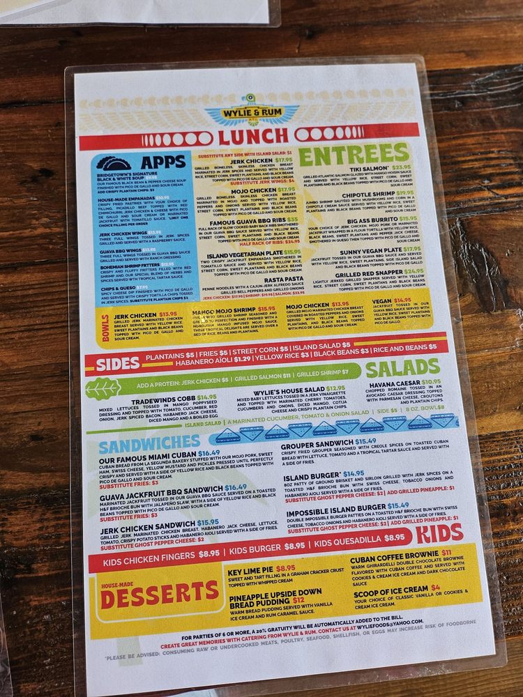 Wylie and Rum not only ensures a satisfying meal but also promotes accessibility and convenience with options for delivery, takeout, and outdoor seating. Don't miss their refreshing rum punch during happy hours!