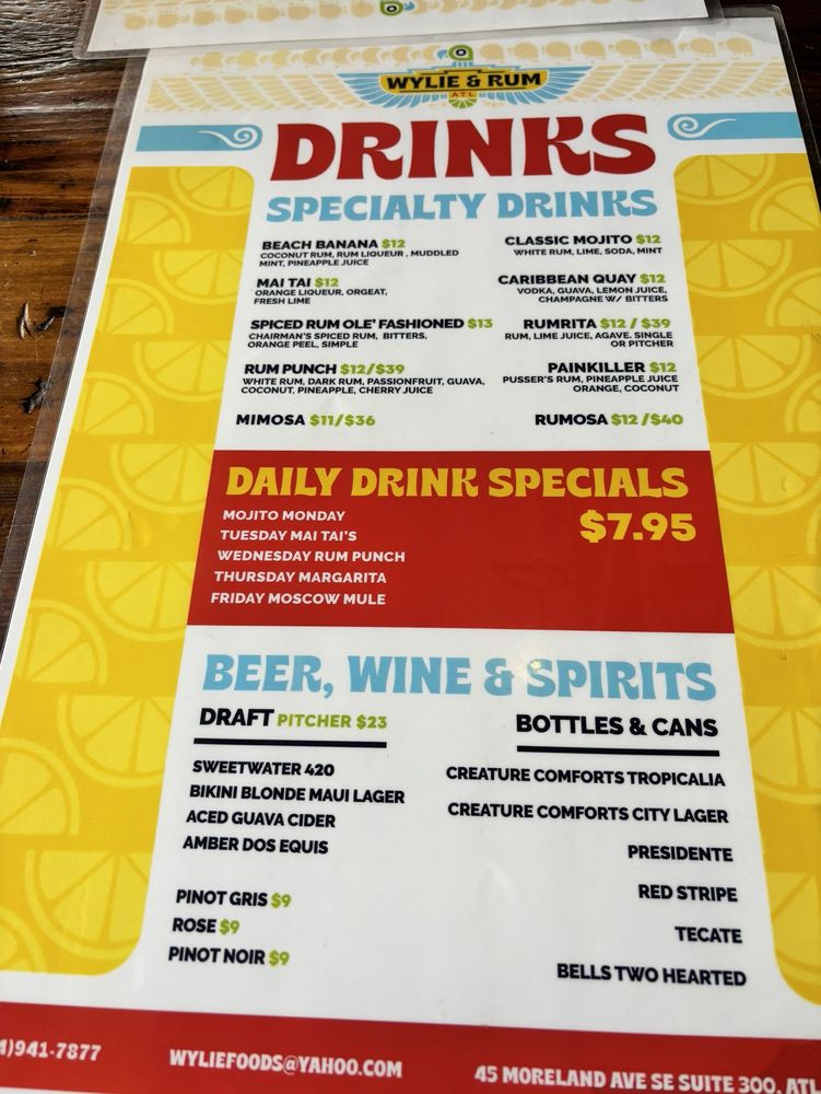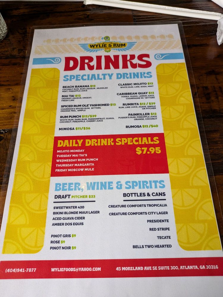 Welcome to Wylie and Rum, a delightful Cuban-Caribbean dining experience nestled in Atlanta's vibrant scene. This casual eatery takes pride in its diverse menu, boasting various pescatarian and vegan options to cater to all tastes. With dishes featuring flavorful jerk seasoning and standout favorites like Guava BBQ ribs and Tiki Salmon, your taste buds are in for a treat!